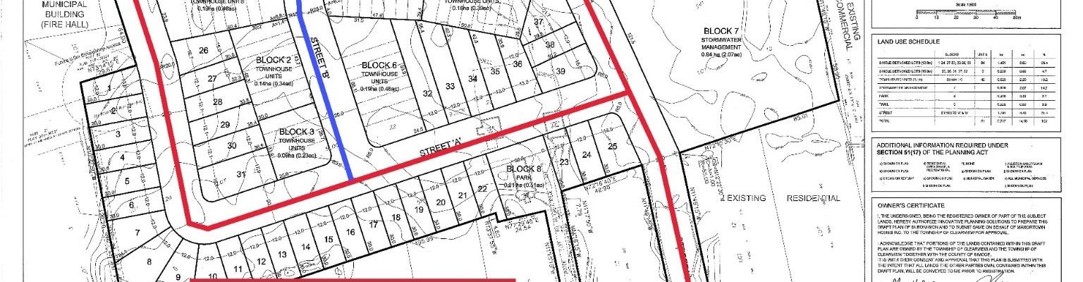 Please be advised that the Township of Clearview has received a request to consider “Manor Drive” & “Ferguson Way” as the names for two (2) new public roads. The subject public roads are situated within the proposed Manortown Homes Inc. Subdivision. The lands are located within the eastern portion of the Stayner Settlement Area, east of the Municipal Emergency Hub Facility lands.
